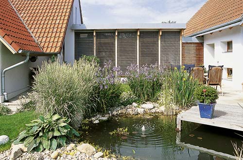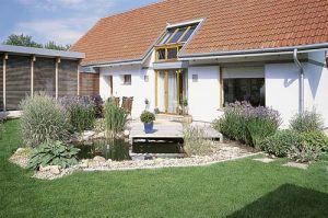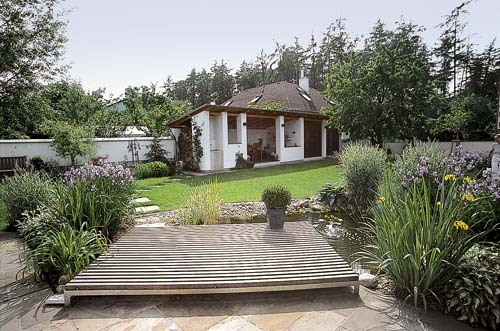 Na rozvržení zahrady je jednoznačně vidět, které květiny má majitelka velmi ráda. „Přiznám se, že mě okouzlily zejména magnólie, kosatce, ale i barvínek či některé druhy travin,“ vypráví. Ani za užitkovou zahradu za domem se majitelé nemusí stydět. Největší chloubou je však jezírko plné rostlin v těsné blízkosti kamenné terasy domu. Příjemně osvěžuje vzduch a pohled na něj z obytné části domu je velmi působivý.
