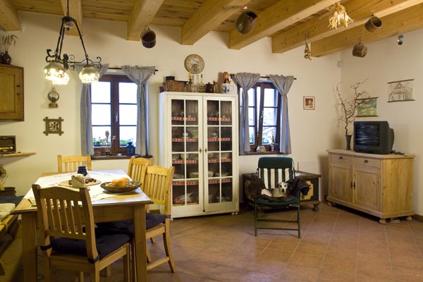 stylové předměty dotvářejí atmosféru venkovského stavení.