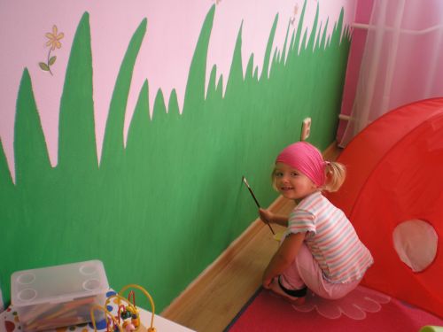 Celý pokojíček je laděn do růžové barvy, kterou má Karolínka oblíbenou. Stěny pokojíčku zdobí mnoho pěkných a veselých obrázků. Jak výmalba probíhala, na to jsme se zeptali paní Stodolové, která má ráda pořád něco nového a kterou láká zkoušet věci, které ještě nedělala, jak nám sdělila.