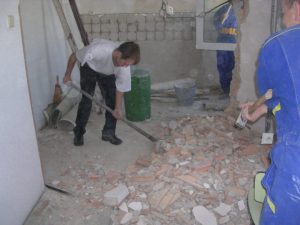 Samotné montáži kuchyňské linky samozřejmě předcházelo ještě mnoho stavebních úprav – pokládka dlažby, nové elektrorozvody, výměna oken a radiátorů a nakonec malování.