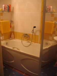 My jen dodáváme, že paní Betlachová vyměnila původní barevné obklady za neutrální béžovo bílé a pořídila si také nové umyvadlo a šikovně tvarovanou vanu s opěrkami pro ruce. Koupelna získala po rekonstrukci moderní a elegantní vzhled.
