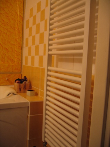 Hlavní část spočívala ovšem v nových rozvodech vody a odpadu, nové elektřině a topném systému – žebřík se do koupelny vešel jen tak tak, ale zato je pořádný.“