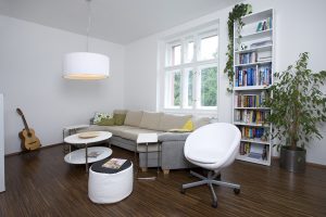 naprostá spokojenost. „Kdybychom rekonstrukci prováděli teď, udělali bychom podlahu parketovou nebo dřevěnou průmyslovou mozaiku a ne dřevěnou plovoucí podlahu,“ řekla Kateřina. „Je to sice jen o pocitu, ale chodit po opravdové dřevěné podlaze je něco úplně jiného,“ dodala.