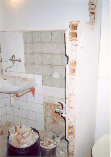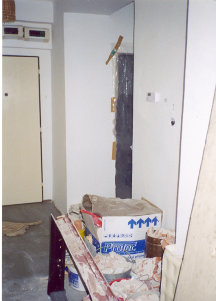 byla vsazena nová dřevěná dveřní křídla, stěny