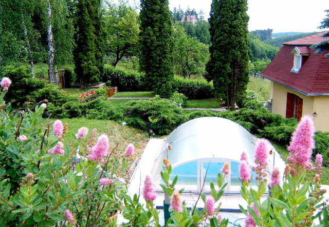 Můj trávník je protkán lučními květy, pilné včely přiláká rozkvetlý sad, okolí provoní okrasné keře. V létě potěší oko záplava růží v terasách, podzim vybarví zahradu všemi tóny barev a neméně krásná je v zimě, kdy odpočívá pod bílou peřinou.“