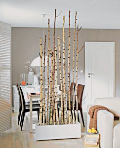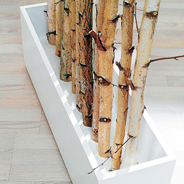 Tři přihrádky z bíle natřené desky MDF měří 110 x 35 cm. Větve upevněte