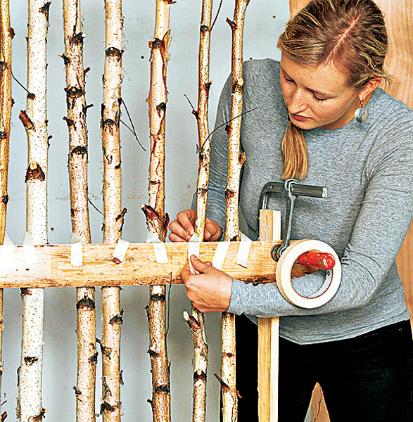 Pak k silným větvím upevněte ještě tenké březové větve.