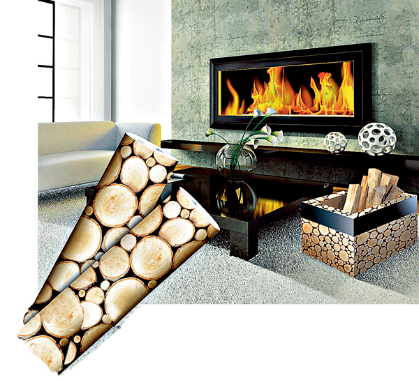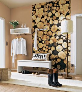 obrázku ji zdobí motiv s hranicí polen. S tapetou se