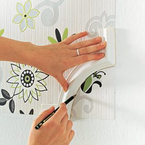 Měkkým válečkem tapetu mírně přitiskněte a vytlačte ven vzduchové bubliny.