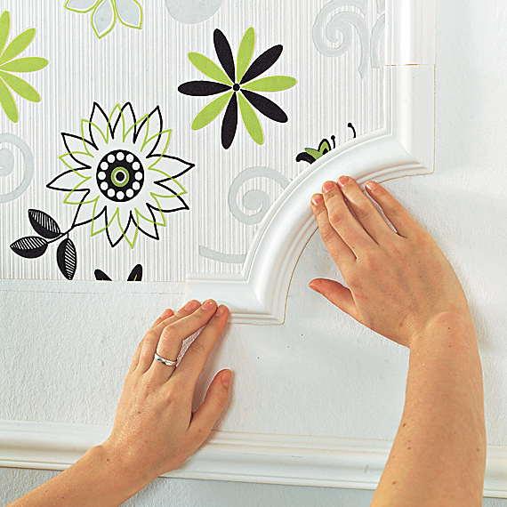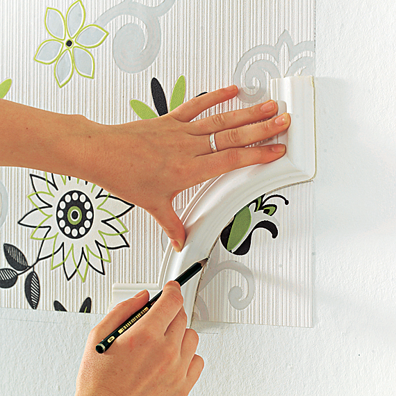 Pomocí truhlářského skládacího metru a vodováhy si na zeď vyznačte požadovanou polohu ozdobných lišt. Změřte si potřebné rozměry. Nejdříve nalepte tapetu nebo spodní část stěny natřete. Nezačištěné okraje můžete později zamaskovat lištami. Ozdobné lišty z tvrdé polyuretanové pěny uřízněte pilkou s jemnými zuby. Na řezání rohů použijte pokosnici. Na lepení dílů z tvrdé polyuretanové pěny vezměte speciální lepidlo!