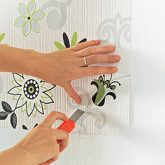 Ostrým cuttrem tapetu odříz-něte přesně podél předkreslené čáry.