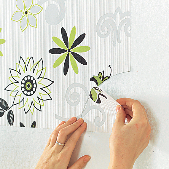 Válečkem naneste na zeď lepidlo na tapety (např. Metylan direct: Henkel).