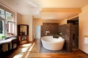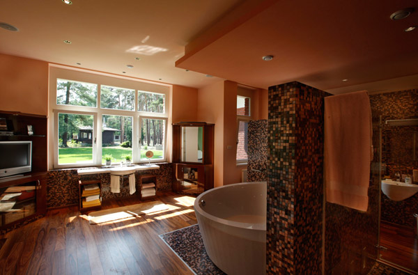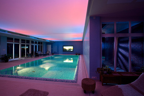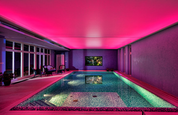 Teplota vody až 28 ̊C, působivá světelná hra LED diod nad stropním optickým plátnem či možnost využít projekčního plátna činí z každé chvilky zde strávené mimořádný zážitek. Francouzská okna zase poskytují nádherný výhled do lesoparku, dálkový ovladač pak zajistí srolování žaluzií a poskytnutí dokonalého soukromí.