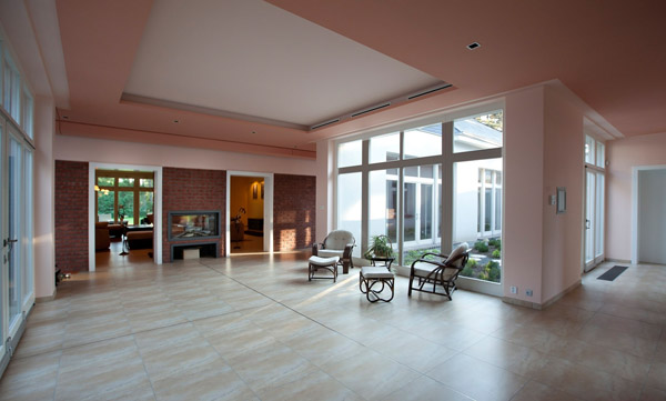 Systém inteligentní domácnosti umožňuje ovládat veškerý technický chod objektu pomocí řídicího LCD panelu. Jediným dotykem displeje je možné upravit aktuální teplotu, osvětlení, klimatizaci, ale i rolety v jakékoli místnosti. Celý dům je navíc v případě potřeby zcela energeticky soběstačný, což zajistí centrála s elektrickým generátorem o výkonu 10 kW. Objekt je vybaven také dvěma plynovými kotli a tepelným čerpadlem, kterým jsou vytápěny všechny podlahy v domě. Pohybová čidla se postarají o dokonalou souhru světel a stínů a umožňují volit podle příležitosti či momentální nálady z pěti scénických osvětlení – od intimního po noční.