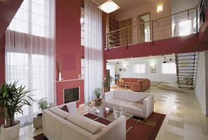 S promyšleným rozvrhem požadovaných místností, jejich velikostí a funkčních vlastností, se manželé obrátili na jim dobře známého architekta. „Jeho první návrh již na 95 procent splnil naše očekávání. Pouze jsme dům na pozemku pootočili o devadesát stupňů, aby průčelí bylo orientováno k jihu, a trochu doladili velikosti některých místností.“ Při návštěvě domu projdeme nezbytnou předsíní a vstoupíme do působivého hlavního společenského prostoru s galerií, který se před námi otevře do výšky přes pět a půl metru. Žádné proplétání se chodbičkami, ale hned za vstupem dojem z velkorysého prostoru prosvětleného dvěma okny vytaženými na plnou výšku, před krbem nabízejí spočinutí dvě pohodlné pohovky. Směrem doleva se přes jídelní kout volně prochází do části kuchyňské, pravá část je zařízena pro reprodukci multimediálních děl. V pravém křídle podkroví jsou umístěny dva dětské pokoje a dětská koupelna, v levém křídle ložnice rodičů, šatna a koupelna s hydromasážní vanou a sprchovým koutem. Na galerii našly své místo knihovny a čtenářský koutek. Z dvojité garáže lze projít až do kuchyně, přes technickou místnost, kde je i odkládací prostor. Hostinský pokoj s příslušenstvím má vstup z předsíně.