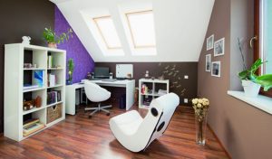 V okolí centrálně umístěného krbu je na zeď nanesen tzv. benátský štuk.