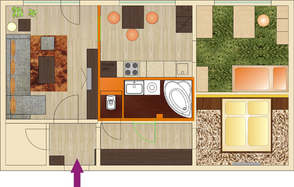 Pokud je nevhodné půdorysné řešení, pěkné barvy ani drahé materiály to nezachrání. Ideální je, když máte půdorys k dispozici v barvách a materiálech, abyste si mohli představit, jak se jednotlivé barvy prolínají celým bytem. Je také dobré vyžádat si půdorysné řešení s kótami. Tím získáte přehled o celém prostoru.