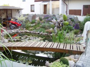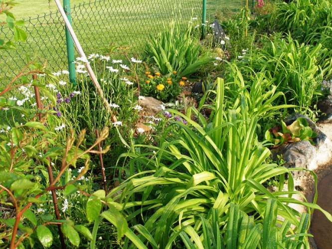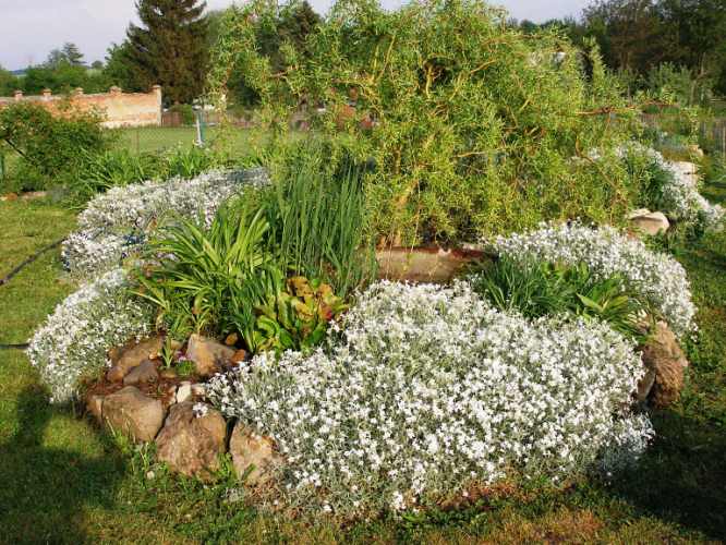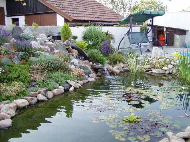 Další fotografie jezirka a skalky jsou od paní Furstové ze Studněvsi (níže i titulní foto), paní Varšavová z Pardubic je autorka fotografie zátiší květin na trávníku (napravo dole).
