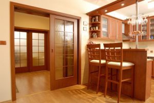 Použité dřeviny mají širokou škálu odstínů, které je třeba respektovat. Pokud chceme vzájemně kombinovat materiály, nikdy bychom neměli kombinovat dřevo z odlišných barevných skupin, tedy například třešeň a ořech. Vhodnými barevnými kombinacemi dřevin na podlaze a dveřích můžete zároveň docílit optického zvětšení prostoru.