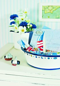 Námořnický styl je letos v módě, a tak neváhejte trochu „převléknout“ i svůj domov. Základem je vždy bílá a k ní patří nestárnoucí pruhy. Pro tento styl jsou typické všechny možné odstíny modré od světlé, přes tyrkysovou až po temnou modř odrážející hlubiny oceánu. A nesmíme zapomenout na doplňky – různé lucerny, majáčky, kulatá zrcadla v podobě okénka do kajuty a plno svíček doprovázených vlastnoručními dekoracemi z oblázků, mušlí nebo mořských ježků. TO vše dodá interiéru správný námořnický ráz, který je oblíbený pro svou jednoduchou barevnost a nesčetné možnosti kombinací.