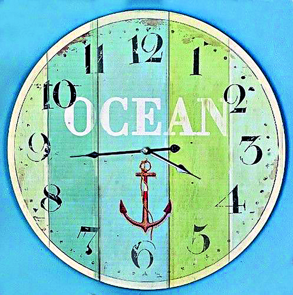 Hodiny s obrázkem kotvy jako by odměřovaly čas tak nějak pomaleji… ( 630 Kč, Almara shop)
