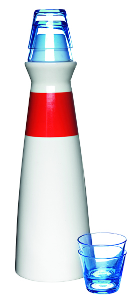 Drink na zdraví K oblíbeným způsobům trávení dovolené patří vyrazit v létě s přáteli k moři, půjčit si na týden jachtu a vyhnout se letoviskům přeplněných turisty. K ještě větší pohodě poslouží porcelánová karafa značky Sagaform ve tvaru majáku. Má objem 0,6 l a je vybavena čtyřmi skleničkami na drink proti mořské nemoci. (725 Kč, Naoko)
