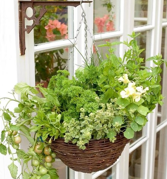 Mezi bylinky můžete také umístit také drobné ovoce, či zeleninu vhodnou do menších nádob či truhlíků. Například cherry rajčata nebo jahody.