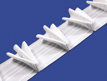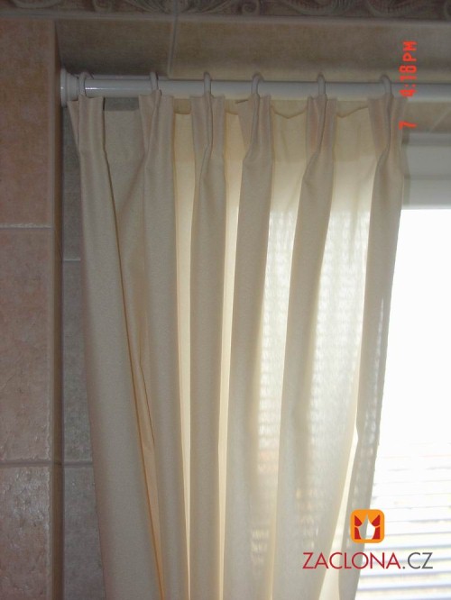 Detail, který mění výsledek, není detailem a proto i použití výrazné řasící pásky bylo v tomto případě vysoce nápaditým a snad i logickým tahem zkušené designérky. Dekorativní Řasící páska 651030 (barva: bílá, řasení: 1:2 řasící páska, tvar „V“ 3- zámek, šíře 80mm vzdálenost mezi řasením 121,5 mm (192 mm))