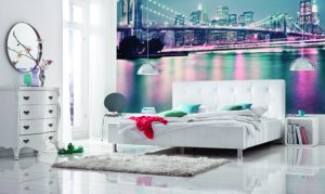 U fototapet nemusí jít pouze o fotku, ale i o fotomontáž či grafiku. Stejný dekor se může opakovat na nábytku nebo třeba textilu. Interiér tak získá zcela nový rozměr. (Foto: A. S. Création)