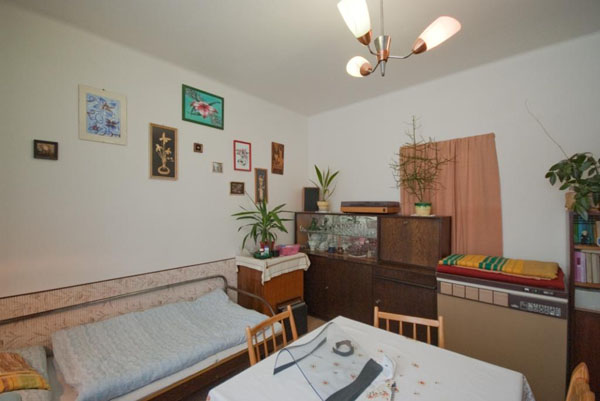 Vedle původní kuchyně je obývák a ve vedlejší místnosti ložnice pro syna. Soukromí nakonec nemá nikdo. Když přijde návštěva, ani se nevejde ke stolu. A dostat se ke kuchyňské lince je téměř nemožné. Na celkové ploše 23 m2 má tedy probíhat příprava i konzumace jídla, společenský život, a dokonce i spaní!