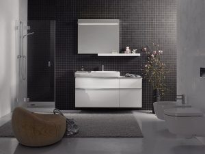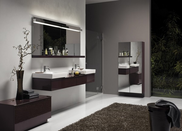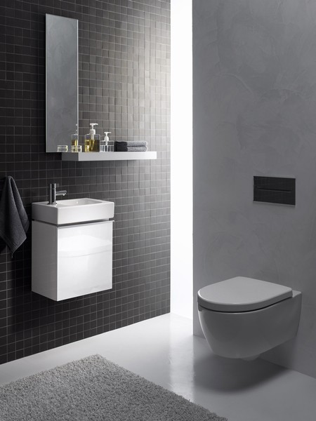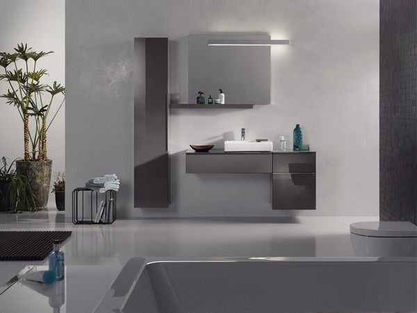 Zcela individuální prostředí vzniká v koupelně také díky kombinaci sanitární keramiky s vhodným koupelnovým nábytkem ve vysoce lesklých trendových barvách – bílé, modravě karmínově červené (burgundy) a platinově šedé. Spodní skříňky pod umyvadla, u nichž tvar a funkce jsou perfektně sladěné (60, 75, 90, 120 x 24 cm), spodní skříňky (60, 75, 90,120 x 62 cm), vysoké skříňky (35 x 180 x 30 cm), boční skříňky (45 x 60 a 89 x 47 cm), osvětlené zrcadlové prvky (60, 90, 120 x 75 cm) a poličky (60 a 90 x 16,5 cm), jakož i zrcadlová skříňka (35 x 150 x 30 cm) vytvářejí vedle velkorysého úložného prostoru a četných odkládacích možností také základ pro novodobé uskupení nábytku. Série iCon nabízí velké množství různých možností představení městského stylu: kromě nadčasové moderní varianty je možné si hrát s různými úrovněmi, barvami a výplněmi a vytvořit tak rovněž nezvyklý a extravagantní vzhled. Novodobé je například propojení zrcadlové skříňky a boční nízké skříňky nebo kombinace spodní a boční skříňky. Co se týká osvětlených zrcadel, je zde možno přesunout světelnou lištu před instalací ze středu doleva nebo doprava, což vytváří zejména ve spojení s korespondujícími instalovanými poličkami vedle nebo pod zrcadlem zcela osobní akcenty. Nábytek lze vzájemně spojovat tak neobvyklým způsobem, že architektura a dojem koupelny dostávají zcela nové impulzy.