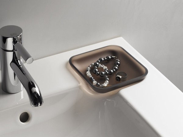Veškerá umyvadla mají jednoduchý, nadčasový moderní tvar a vyznačují se rovnými vnějšími konturami, jemným vnitřním tvarem a velkorysými odkládacími plochami. Řada iCon zahrnuje čtyři umyvadla (60, 75, 90 a 120 cm), jedno dvojumyvadlo (120 cm) a v neposlední řadě dvě asymet-rická umyvadla (50 a 90 cm) v pravém a levém provedení. Tyto varianty mají v pravé nebo levé vrchní části odkládací plochy prohlubeň v keramice, do které se vkládá atraktivní dekorativní miska. Kromě dekorativní funkce může být používána ke zcela praktickým účelům. Když se naplní malým množstvím vody, je vhodná například k čištění holícího břitu nebo může sloužit jako bezpečné úložiště šperků, které se odkládají při mytí. Barevný odstín misek koresponduje s barvami nábytku a tvoří hezký kontrast k bílé keramice. Do koupelen pro hosty bylo navrženo umývátko iCon o šířce 38 cm, s otvorem pro baterii vpravo nebo vlevo, nebo rohové umývátko s délkou ramene 32,5 cm.