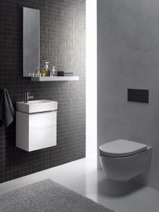 Klozet, stejně jako bidet přejímají plynulou rovnou vnitřní konturu umyvadel a tvoří tak kontrast k přísné vnější geometrii umyvadel. Klozetové sedátko může být vybaveno automatickým pozvolným sklápěním. Všechny sanitární předměty jsou v bílé barvě (Alpin) a na přání s povrchovou úpravou KeraTect odpuzující nečistoty, bakterie a vodní kámen.