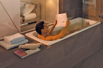 Této koncepci koupelen, které tak přispívají k vytváření otevřeného obytného prostoru, se přizpůsobují i výrobci dodávající na trh jednotlivé koupelnové komponenty. Jak tvary, tak také používané materiály – dřevo, sklo, chrom i akryl – splňují požadavky současného zvětšeného koupelnového prostoru.v