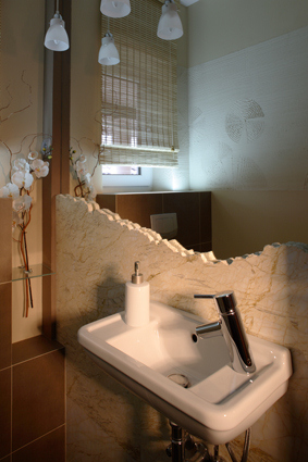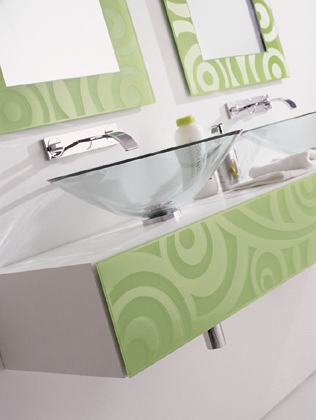 Okraje zrcadel opatřené barevným transparentním lakem vytvářejí zase naopak teplé světlo. Novinkou jsou zrcadla kombinovaná s barevným sklem Lacobel, které vytváří barevný nereflexní rám. Pokud se chceme zhlížet v zrcadle luxusnějšího provedení, můžeme si pořídit zrcadla v pískovcovém rámu. Tak zvaný ohebný pískovec je jednou z nejnovějších technologií – ohebná fólie s lepivým povrchem se přitiskne na přírodní pískovec. V lepivé vrstvě se zachytí dva až tři milimetry pískovce, který se zalakuje, aby se neoddroloval. Touto fólií se polepí podklad zrcadla a podsvítí. Výsledkem je v kombinaci s osvětlením velmi teplé světlo linoucí se z jedinečného a luxusně vypadajícího kamenného rámu.