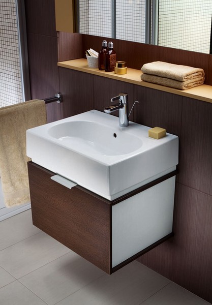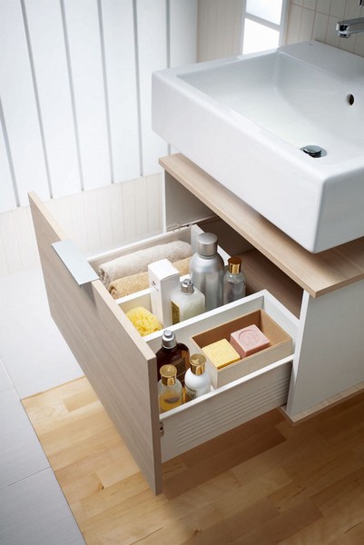 Série Twins dává mnoho možností k utváření koupelny. Umyvadlo může být kompletováno se skříňkou na několik způsobů: v setu, kde tvoří ucelenou kompaktní formu; s dekorativním panelem nebo s nerezovou krytkou sifónu. V získaném prostoru mezi umyvadlem a skříňkou se tak dodatečně nabízí odkládací prostor. Skříňky ve světlé barvě dubu arava nebo v tmavě hnědé barvě wenge lze ideálně kombinovat v každé koupelně. Prostorné zásuvky a materiály s vysokou odolností proti vlhkosti dokazují, že řada Twins je vysoce estetická a funkční.