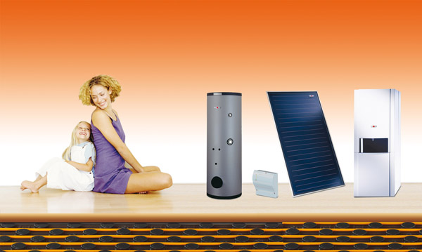 Podlahové i stěnové topení zaručují energeticky úsporný provoz. Je zabudované v podlaze, či v omítce, a proto nenarušuje architektonické řešení a design interiéru. Patří mezi velkoplošné sálavé topné systémy. Z vytápěné plochy – podlahy nebo stěny – se teplo šíří rovnoměrně do celého prostoru. Teplota vody, která proudí trubkami v podlaze, je nižší než 50 °C, což představuje vysokou provozní úsporu energie.