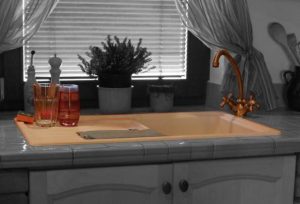 Dřez je další důležitou součástí pracovní plochy. Měl by být vybrán tak hluboký, abychom se o jeho dno mohli pohodlně opřít hřbety rukou s nataženými lokty, aniž bychom se přitom hrbili.