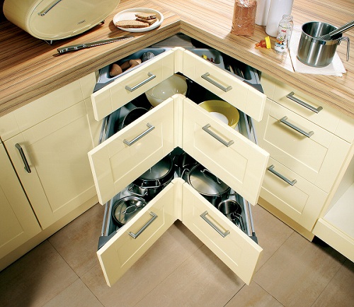 Když máme tento základ, můžeme řešit to, zda nechat linku rovnou, či ji zatočit do tvaru písmene L, což je často nejlepší řešení v panelákových bytech. Vhodnou variantou je i tvar písmene U. Podle stavu vaší peněženky volte i druhy skříněk. Nejdráž vás vyjdou takzvané plnovýsuvy, které ale nabízejí výborný přehled o uložených věcech, nejlevněji klasické police. Vhodný je kompromis mezi všemi typy.