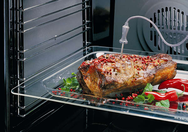 Výhodou je, že se rožeň s masem během celého procesu pečení otáčí o 360°C stupňů, díky čemuž se například celé kuře propeče více rovnoměrně a zachová si i lepší chuť než při klasickém grilování v pekáči. Ale protože opravdoví gurmáni dávají přednost grilování, lze obě funkce – gril a rožeň – u této trouby spojit, a dosáhnout tak při přípravě masa ještě lepších výsledků. Dalším praktickým příslušenstvím pečícího pomocníka je pečící termosonda. Tato jehla se jednoduše zapíchne do pokrmu (například maso) a během pečení pak měří aktuální teplotu uvnitř pokrmu, kterou zobrazuje na přehledném displeji. Při dosažení nastavené požadované teploty se trouba za zvukového signálu vypne.