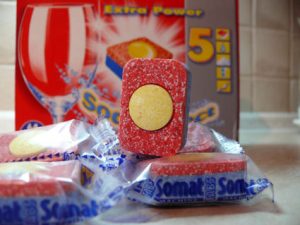 Sůl totiž nejen chrání myčku před vodním kamenem, ale upravuje tvrdost vody tak, aby mohly mycí prostředky fungovat co nejúčinněji, leštidlo pak brání tomu, aby na nádobí nezůstaly skvrny a šmouhy ani viditelné zaschlé kapky vody. Sloučeniny vápníku a hořčíku, které tvrdost vody způsobují, se totiž mohou při vyšší teplotě na nádobí i uvnitř myčky vysrážet. Tomu brání zařízení na změkčování vody – takzvaný iontoměnič neboli zásobník s pryskyřicí, který obsahuje ionty sodíku. Čím je voda tvrdší, tím se musí sůl častěji doplňovat.