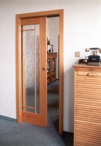 Volba celoprosklených dveří v interiéru zajistí eleganci a lehkost daného prostoru. V případě zasouvacích dveří je nejefektnější variantou použití čirého skla bez rámů nebo s využitím kresby na skleněné dveřním křídle. Velmi módní výplní je čiré sklo s částečným pískováním nebo lepenou fólií v imitaci listů, rákosí nebo jednoduchými geometrickými vzory.