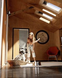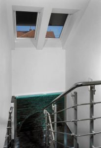 Manželé Petr s Alenou zvolili nejúčinnější řešení proti přehřívání podkroví v létě, které nabízí předokenní rolety VELUX. Ty dokáží zachytit až 95 % tepla ze slunečních paprsků ještě před dopadem na sklo. V zimním období naopak účinně snižují tepelné ztráty až o 15 % a šetří tak výdaje za vytápění. Předokenní roleta navíc chrání střešní okno před poškozením i před nechtěnými pohledy zvenčí. Dokáže také utlumit venkovní hluk z deště a krupobití až o 3 dB, což člověk v místnosti vnímá jako pokles hlučnosti o celou polovinu. Ve stažené poloze předokenní roleta dokonale zatemní interiér a vy tak můžete nerušeně odpočívat.