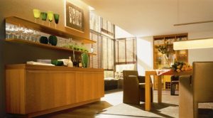 Při vybavování společenského prostoru bychom měli brát ohled i na pohodlnost pohybu v obýváku a zajistit průchodnost hlavních tras od dveří do kuchyně, ke stolu i do odpočinkové zóny. Samozřejmostí je volný výhled směrem k televizi, na dominanty v pokoji (krb), francouzské okno do zahrady nevyjímaje.