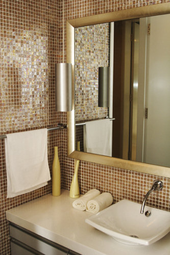 Použití zrcadla v koupelně má kromě toho také velký optický efekt – zvětšuje prostor. Proto se zrcadla používají částečně i místo obkladu. V kombinaci s dobře zvoleným a dostatečným osvětlením dosáhnete výrazného „navýšení“ prostoru.