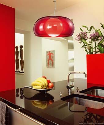 Zde však platí, že bychom jejich menší světelné intenzity měli využívat jen v kuchyních s vysokými stropy nebo v krajních případech v bytech, kde nelze umístit elektrické vývody na strop. Jednotlivé kouty v kuchyni si pak žádají individuální světelná slunce. Nad jídelním stolem by měl viset světelný zdroj takový, který navodí příjemnou atmosféru. Měl by rovnoměrně osvětlovat stůl, a zároveň neoslňovat. Takovému účelu vyhovují svítidla s matnými stínidly.