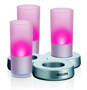 Variantou barevného osvětlení do koupelen, bazénů nebo vířivek jsou v produkční řadě LED svítidel firmy Philips, svítidla řady AquaLight. Aqualight je sada třech svítidel v bílé barvě uzpůsobené tak, aby volně pluly po hladině a plnily funkci dříve používaných svíček, které jste mohli maximálně umístit po obvodu vaší vany. Použitím tohoto osvětlení snižujete riziko ohně a v případě obdobných produktů s nutností připojení do el. sítě, také úrazům od el. proudu při zachování romatnického prostředí a žádaného relaxačního efektu. Pomocí bezdrátové nabíječky si můžete neopakovatelnou atmosfíru užívat až celých 20h.