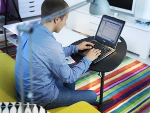 Malý pracovní mobilní stolek pro laptop můžeme využít pouhým přisunutím k volnému křeslu či židli. Protože při komunikaci prostřednictvím sítě nepotřebujeme skutečně nic jiného než právě jen notebook, nebude nám chybět odkládací plocha a svoje „pracovní místo“ si můžeme vytvořit prakticky kdekoliv. K rychlému použití nebo také k uklizení laptopu slouží závěsná odkladová skříňka, kde pracovní plochu získáme pouhým otevřením dvířek. Kompletní malou „domácí pracovnu“ získáme instalací pracovní skříně s roletkou (žaluzií), kde kromě místa na počítač najdeme také úložný prostor. Největší výhodou této malé pracovny je její praktičnost. Pouhým zatažením roletky máme pohotově uklizeno. Samostatný počítačový stolek již vyžaduje alespoň pár metrů místa navíc, je-li ale mobilní, nemusí být nutně stabilně umístěn – dá se převážet a posunovat s celým instalovaným pc kompletem. Ideální je zakoupit stůl, kde jsou pro umístění počítače i komponentů speciálně upravené fochy a přihrádky a výsuvný šuplík pro klávesnici. Kompaktní kus pak přemístíme bez obav z nechtěného pádu nebo poškození techniky.
