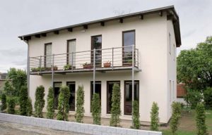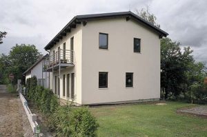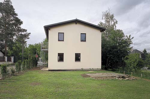 Dům není podsklepený, základovou desku investorům postavila místní stavební firma. Pak přijely čtyři kamiony a za dva dny stála hrubá stavba. Celá stěna jednoho podlaží tvoří jeden panel včetně všech rozvodů. S umytou podlahou předala firma dům po čtrnácti dnech majitelům.