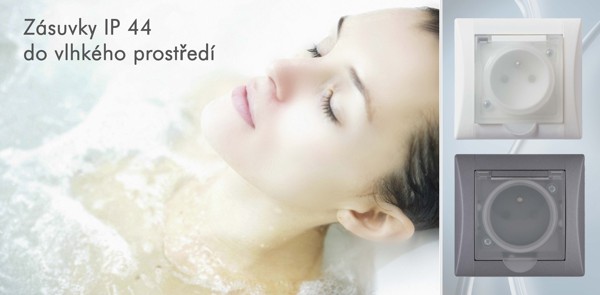 Do koupelen se zásadně doporučují zásuvky s krytem. Zvýšené krytí IP 44 chrání zásuvku před vlhkem, prachem a jinými nečistotami. Na českém trhu tuto zásuvku nabízí český výrobce OBZOR, výrobní družstvo Zlín. Nejrozšířenější řada vypínačů a zásuvek ELEGANT nabízí provedení těchto zásuvek v bílé barvě nebo v metalických odstínech (hliník, grafit, zlatá, titan). Ochranné víčko je jednotně mléčně bílé. Toto elegantní řešení nijak nebude narušovat vaši estetickou představu koupelny. U zásuvek je také na zvážení, zda neumístit alespoň na některých místech takové, které ochraňují následně připojené přístroje před přepětím. Zvolit si tak můžete zásuvku s přepěťovou ochranou typu 3 se světelnou, anebo zvukovou signalizací. Pomocí přepěťové ochrany můžete chránit elektrospotřebiče proti negativním účinkům v elektrorozvodné síti (škody v důsledku atmosférických výbojů nebo spínacích procesů v síti nízkého napětí). Při poruše nás zásuvka (OBZOR – DSE16-1) upozorní zhasnutím světélka kontrolky nebo pískavým tónem. Protože přepěťový modul je ke svorkám zásuvky připojen paralelně, bude zásuvka i po zničení přepěťové ochrany fungovat dál, avšak připojená elektrická zařízení již nebudou chráněna. Pokud chcete i nadále mít své elektrospotřebiče chráněny a nechcete měnit celou zásuvku, je možné samostatně dokoupit přepěťovou ochranu (OBZOR – DSE28) a umístit ji na určitý bod v síti. Přepěťová ochrana může být součástí jak jednonásobných zásuvek, tak také u dvojzásuvky. Konstrukční řešení dvojnásobné zásuvky umožňuje zapojení dvou tzv. flexovidlic zároveň díky natočeným dutinám. Bezpečnost před úrazem elektrickým proudem zvyšuje zásuvka s dětskou ochranou, u které jsou otvory zásuvky kryté clonkami.